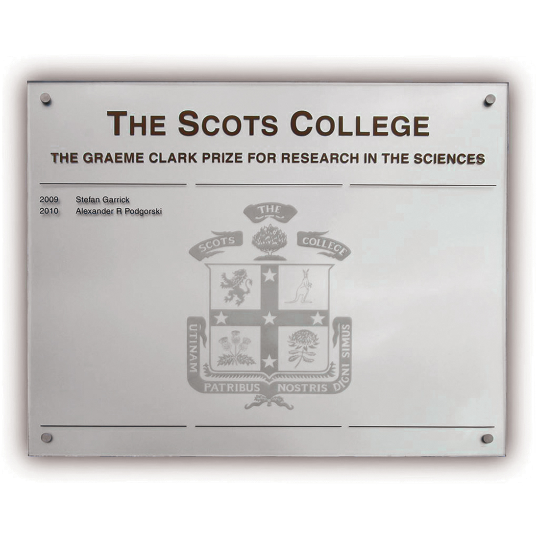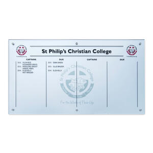 Our contemporary honour boards are made from acrylic, metal, glass, or a combination.