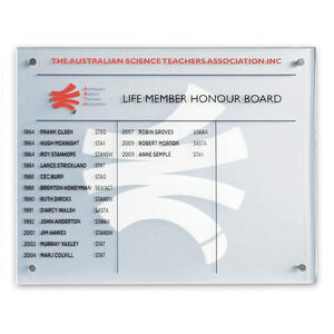 The clear glass surface offers a modern, minimalist aesthetic, making this glass honour board an ideal choice for corporate settings, schools, or community organisations.