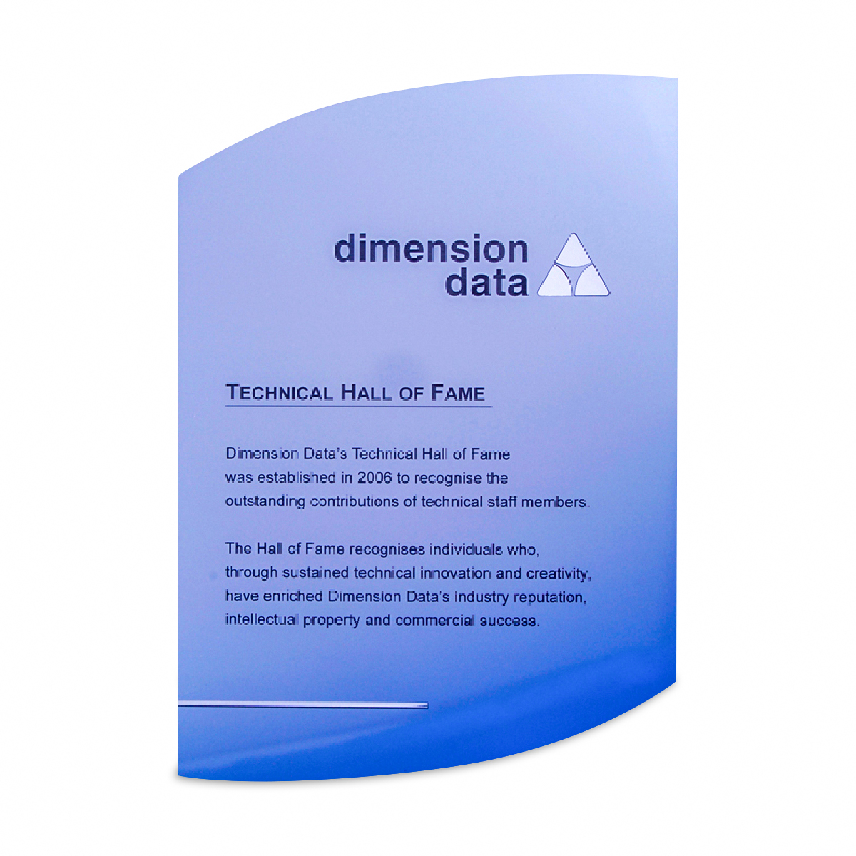 The lumina plaque combines a sleek vinyl print with a acrylic overlay, resulting in a polished and durable plaque award. Its contemporary design and smooth finish lend a professional touch, making it an ideal choice for recognising achievement in corporate, educational, or community settings. The layered construction offers a refined presentation, ensuring the award remains both memorable and distinguished.