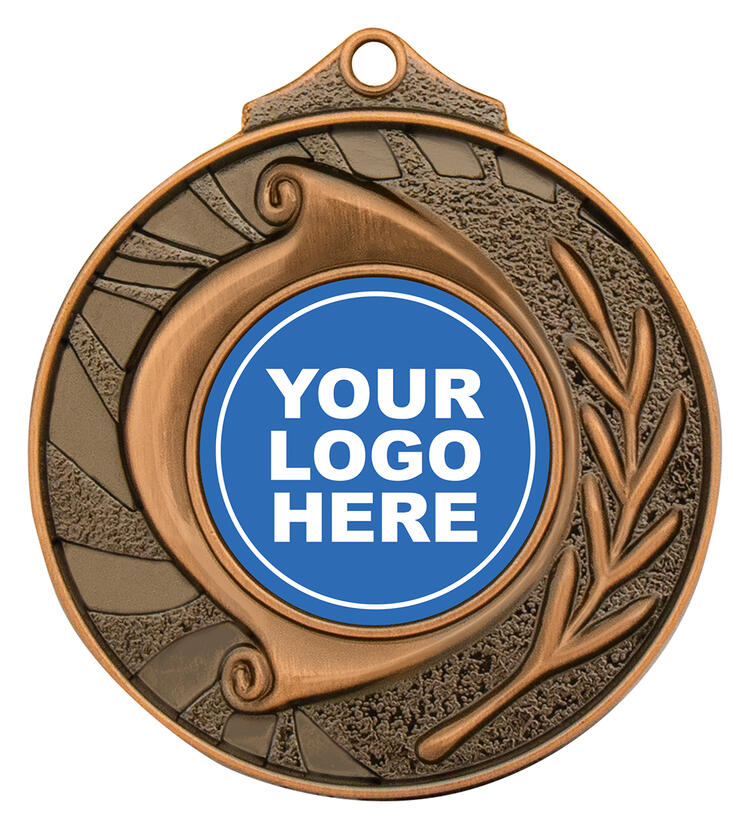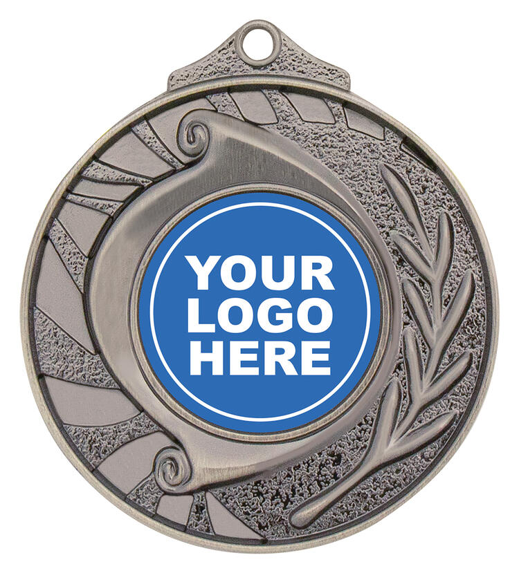 Crafted in durable metal and finished in your choice of silver, gold, or bronze, this circular sports medal stands out with decorative wreath patterns. The 52mm diameter provides a classic, substantial feel. A 25mm central area offers space for custom branding, making it a versatile choice for recognising sporting achievements across a range of events.