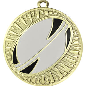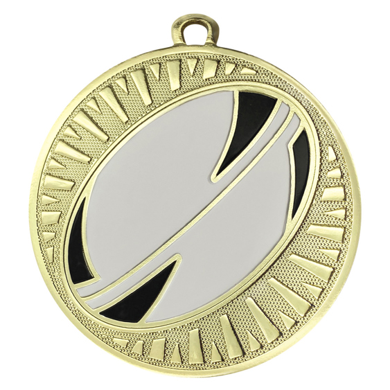 Celebrate achievement in rugby with a striking medal crafted for distinction. The Rugby Spark Medal features a bold rugby ball at its centre, enhanced by elegant decorative patterns and a classic circular form. Available in gold, black, and silver finishes, this durable metal piece is an ideal choice for rugby awards that honour both individual and team success.