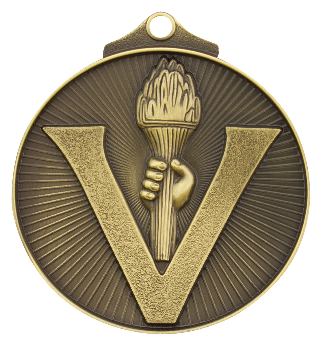 Celebrate outstanding achievement with this victory medal, crafted in a classic circular shape from durable metal. Available in an elegant gold, silver or bronze finish, it features a striking 'V' motif with a torch and hand design, symbolising accomplishment and recognition. A practical loop allows for easy ribbon attachment, making this piece a memorable and versatile award for any occasion.