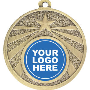 Celebrate sporting achievement with the Budget Starshine medal, crafted in durable metal and finished in your choice of bronze, gold, or silver. Its circular shape and radiant star design bring a touch of elegance to general sports recognition, while a central area allows for customisation. An ideal solution for those seeking cheap sports medals with a professional appearance.