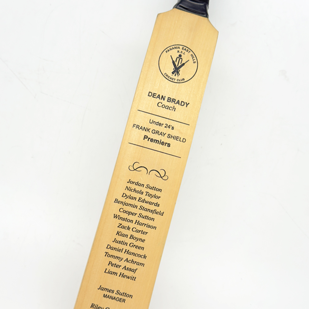 These miniature cricket bats are a popular choice for coaches, team awards, player gifts, club fundraising, or corporate mementos. A lasting piece of memorabilia that can be treasured for years to come.