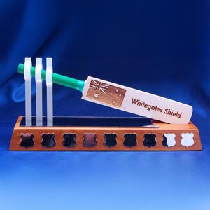 Designed to include multiple nameplates, this custom piece is ideal for recognising annual cricket achievements or club honours.