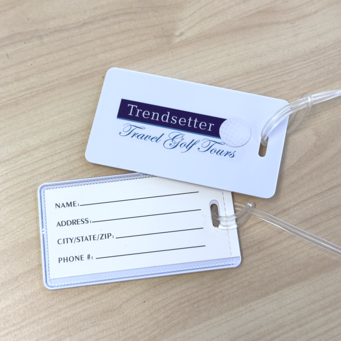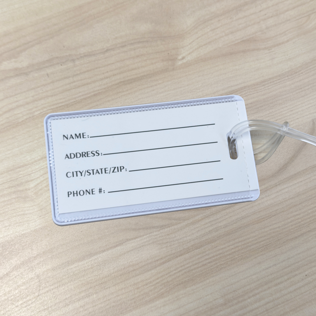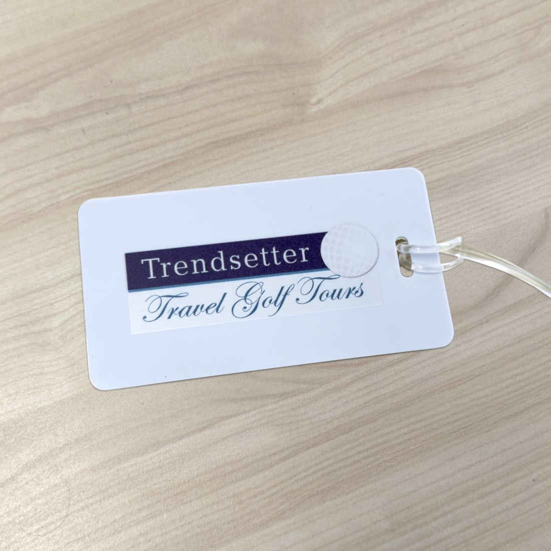 The durable spaghetti loop strap keeps it firmly attached to your luggage, while the clean white finish offers a classic and versatile look. Have your logo or image printed in full colour.