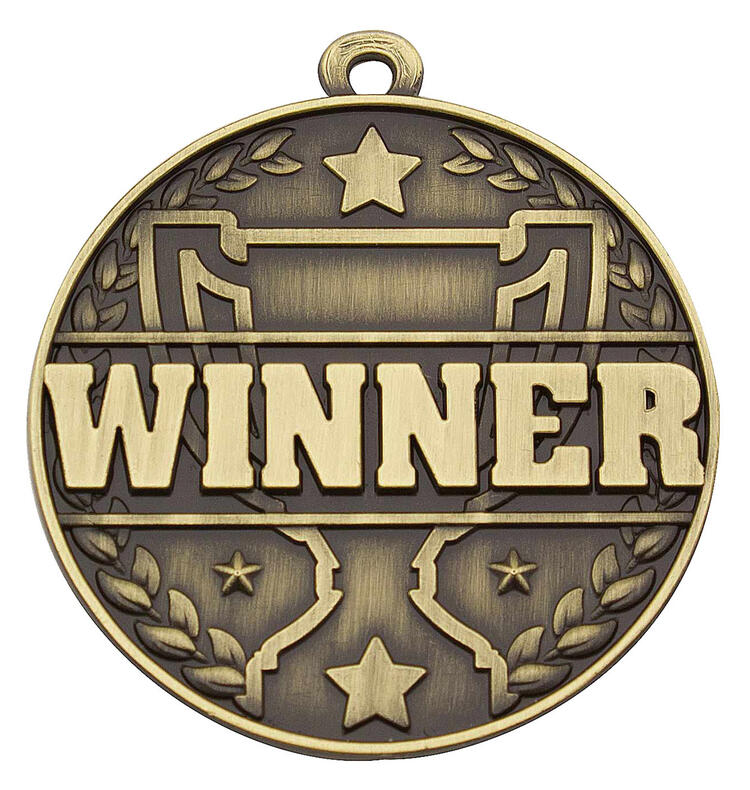 This winner medal pairs durable metal craftsmanship with a refined gold finish, making it suitable for a variety of sporting achievements. The circular design features the word 'WINNER' prominently, surrounded by elegant star and laurel details that underscore accomplishment. Its balanced presentation offers both visual appeal and a sense of lasting recognition for every recipient.