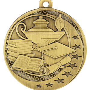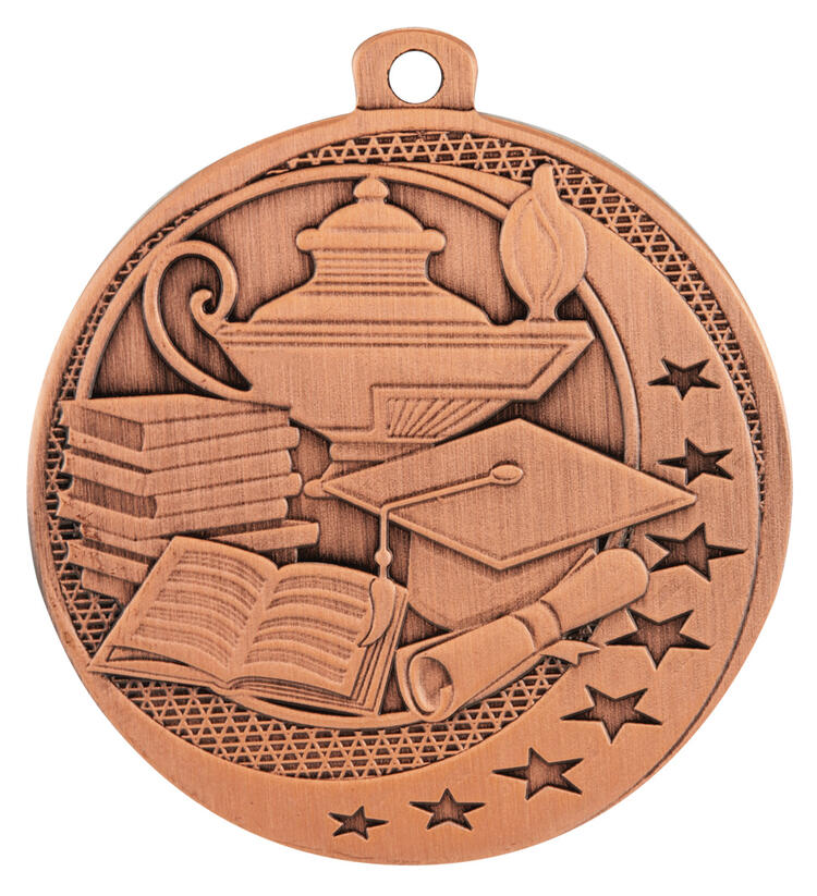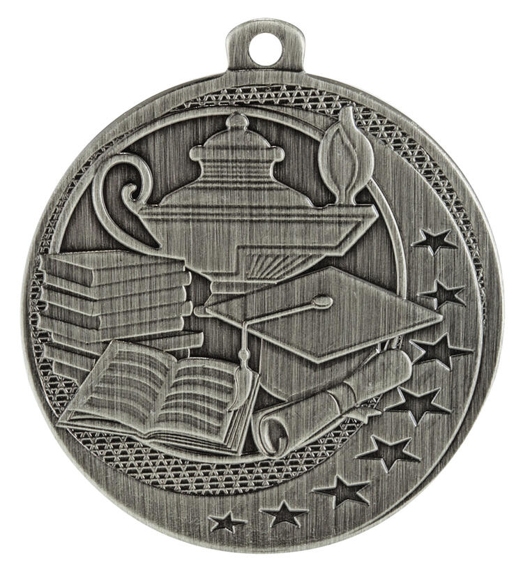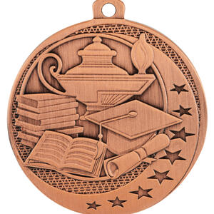 Celebrate outstanding academic achievement with this academic excellence award medal. Crafted from durable metal and available in elegant silver, bronze, or gold finishes, it features a distinguished circular design highlighted by embossed icons of a lamp, books, a graduation cap, and a diploma, all surrounded by stars. Thoughtfully designed for schools and organisations seeking a memorable and meaningful way to honour success.