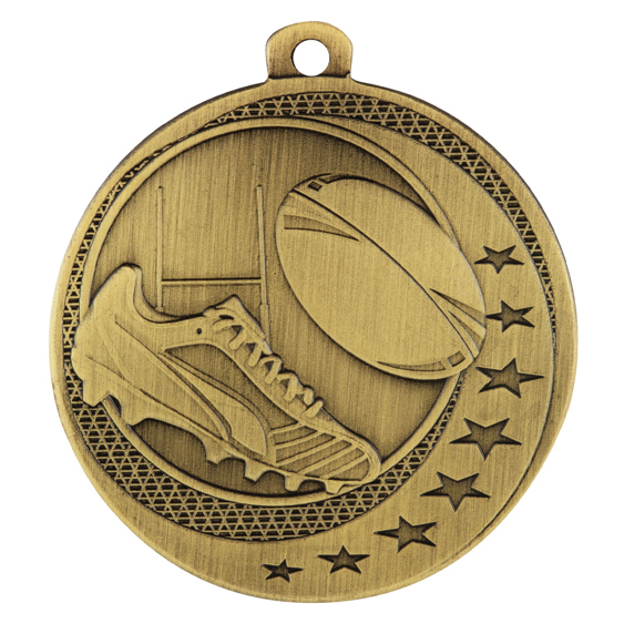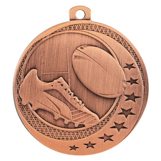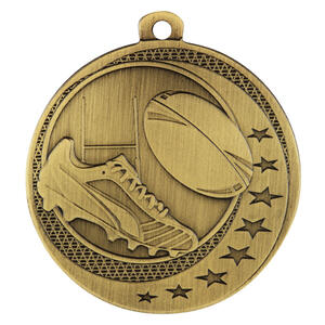 A rugby medal designed for meaningful recognition, this metal award features a striking circular form in your choice of gold, silver, or bronze. Detailed with a rugby ball, boot, and goalposts, it captures the essence of the sport. Durable crafting ensures this medal stands as a professional and memorable celebration of rugby achievement.