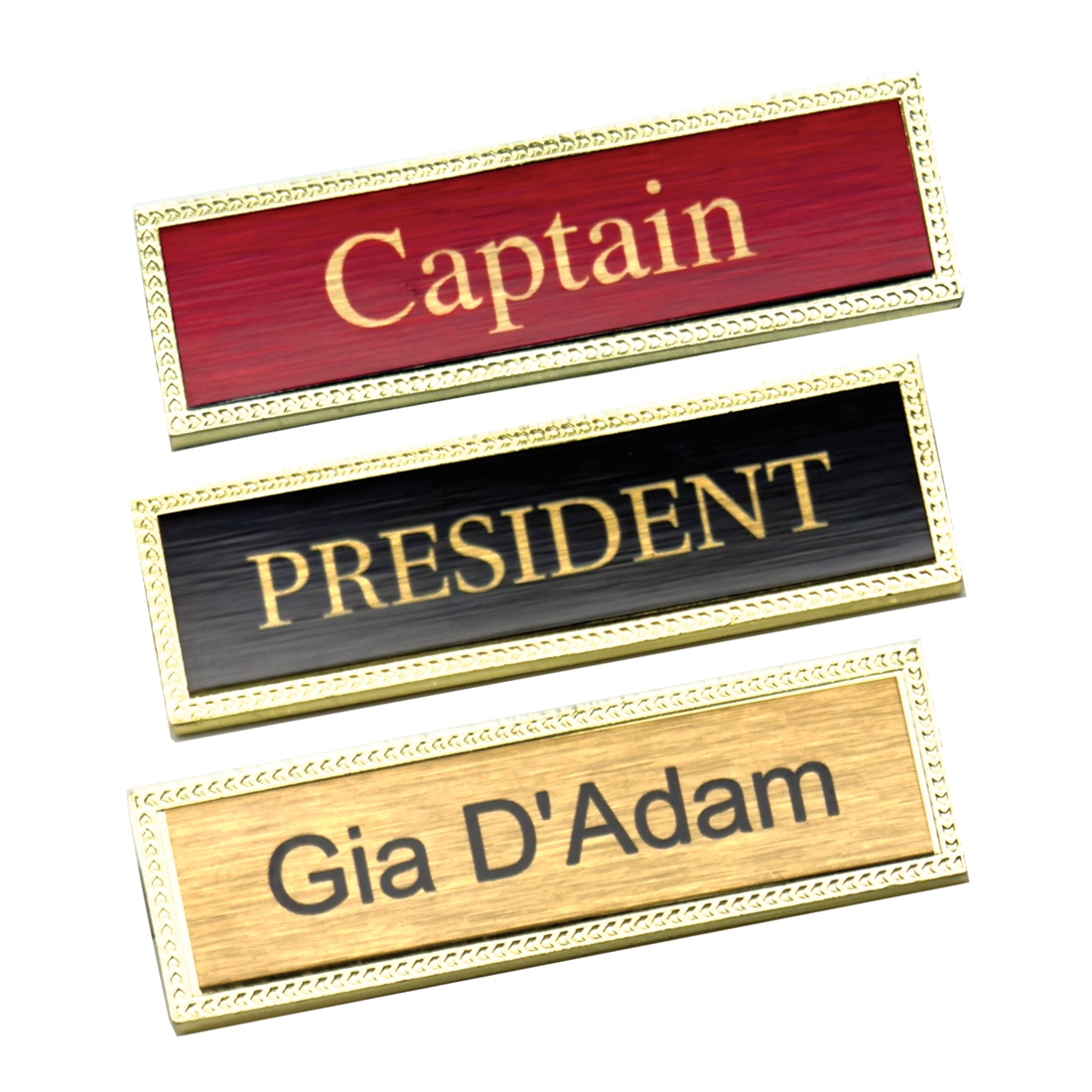 It features a gold-plated metal frame with a secure brooch pin backing. The insert plate can be printed in any colour with your chosen wording, allowing full customisation for roles, names, or titles. Stylish, durable, and professional, this badge is a simple way to recognise staff, students, or valued members in your organisation.