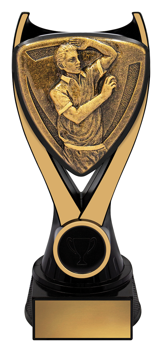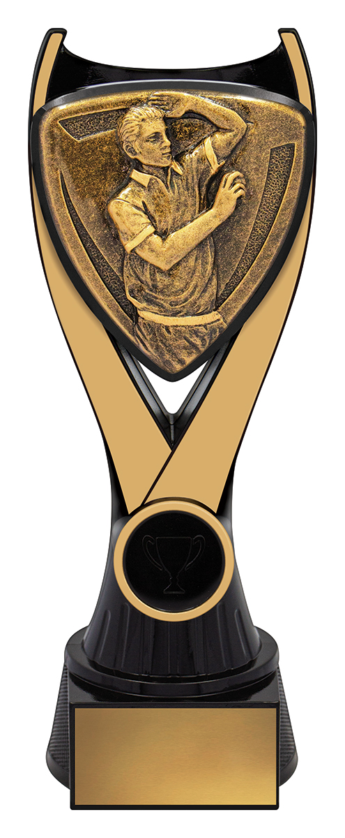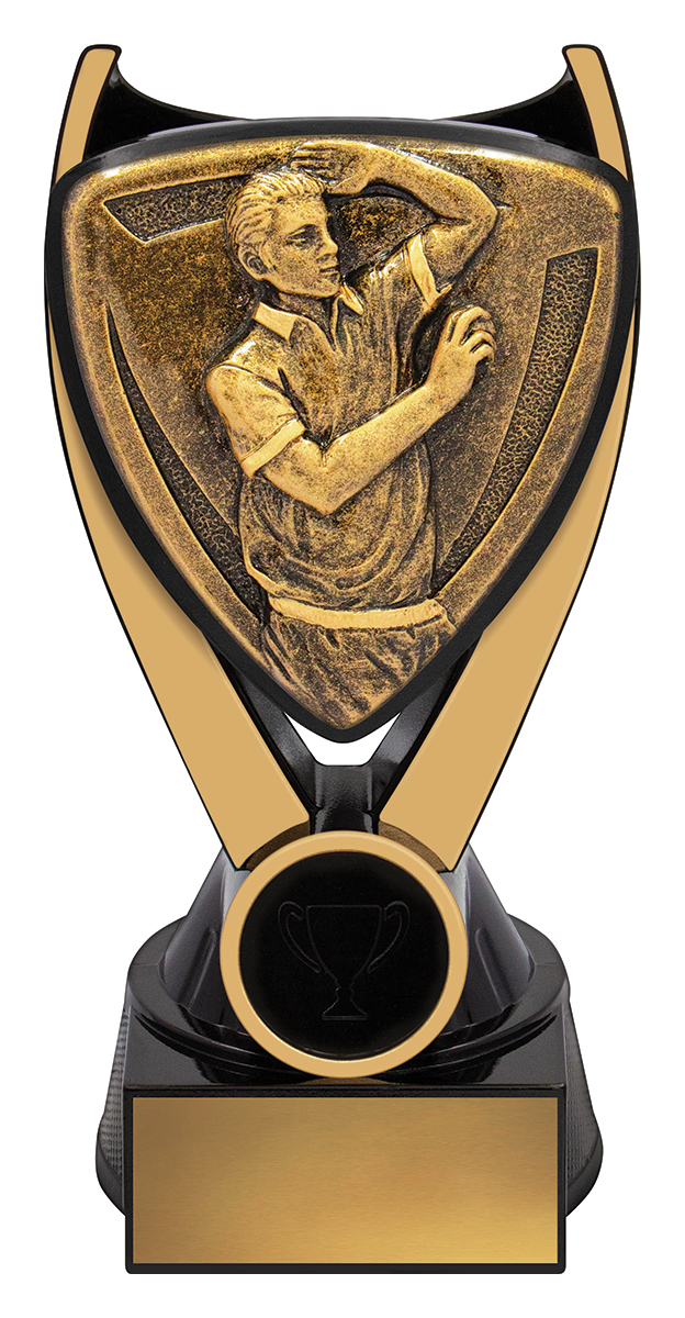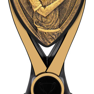 Celebrate bowling excellence with this distinguished cricket trophy from the Nova Series. Featuring a striking gold and black finish, the shield like design showcases a cricketer in mid action, captured in precise detail. Crafted from durable resin, it is an ideal choice for meaningful cricket awards that recognise skill and commitment on the field.
