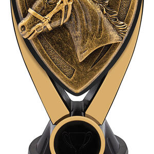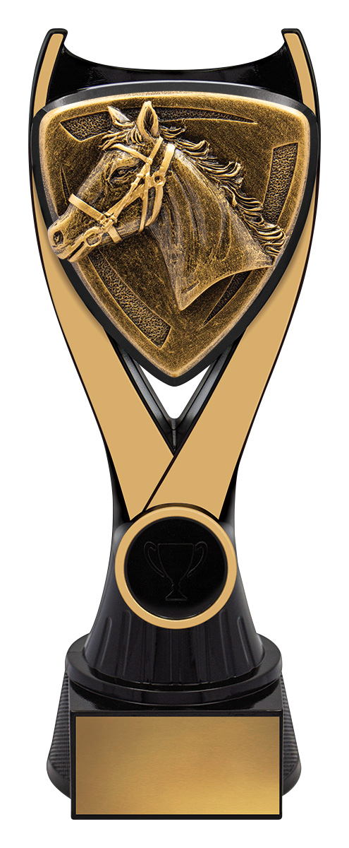 This contemporary award captures the spirit of the arena with its shield inspired form and distinguished horse head design. Crafted from resin in gold and black. it balances durability and style. Nova Horse stands as a reliable choice among equestrian trophies, offering a memorable tribute to achievement in horse sports.