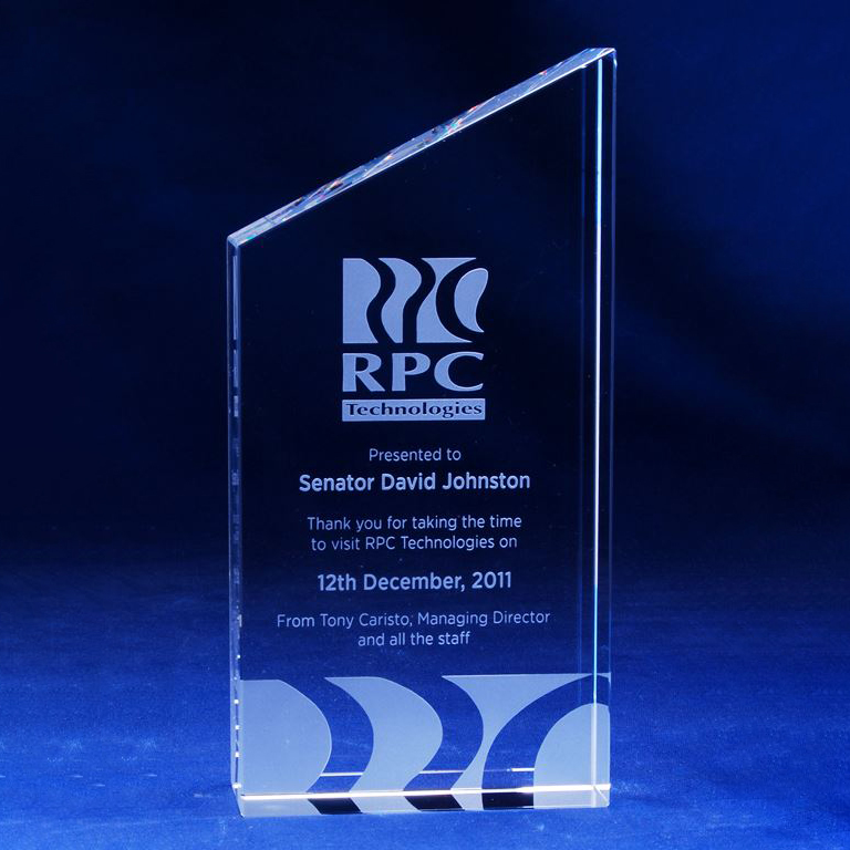 We use Superior Sandblast engraving or high-resolution full-colour printing to achieve striking results on our glass awards and trophies.