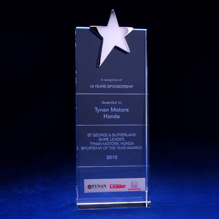 We use Superior Sandblast engraving or high-resolution full-colour printing to achieve striking results on our glass awards and trophies.