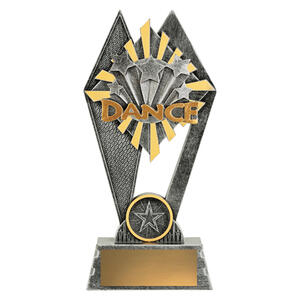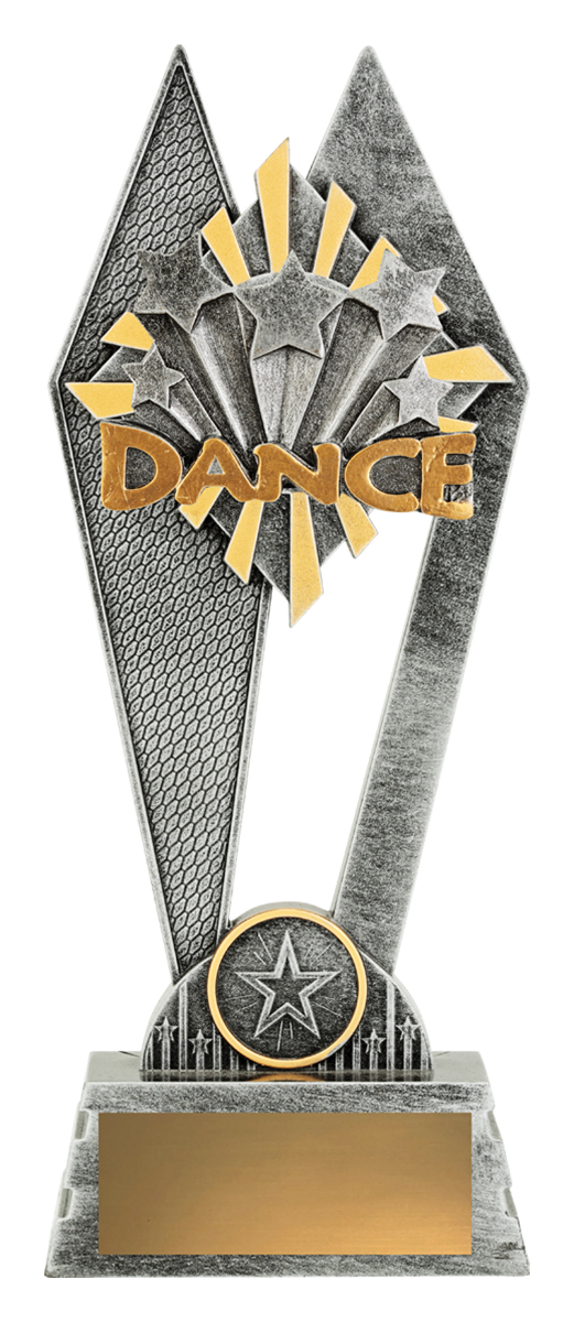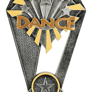 This dance trophy blends geometric lines and star motifs in a striking silver and gold finish, creating a sophisticated award for dance excellence. Crafted from durable resin, it features a prominent star design and the word ‘Dance’ boldly displayed. Its contemporary style makes it a memorable and elegant choice for recognising standout achievement in the dance community.