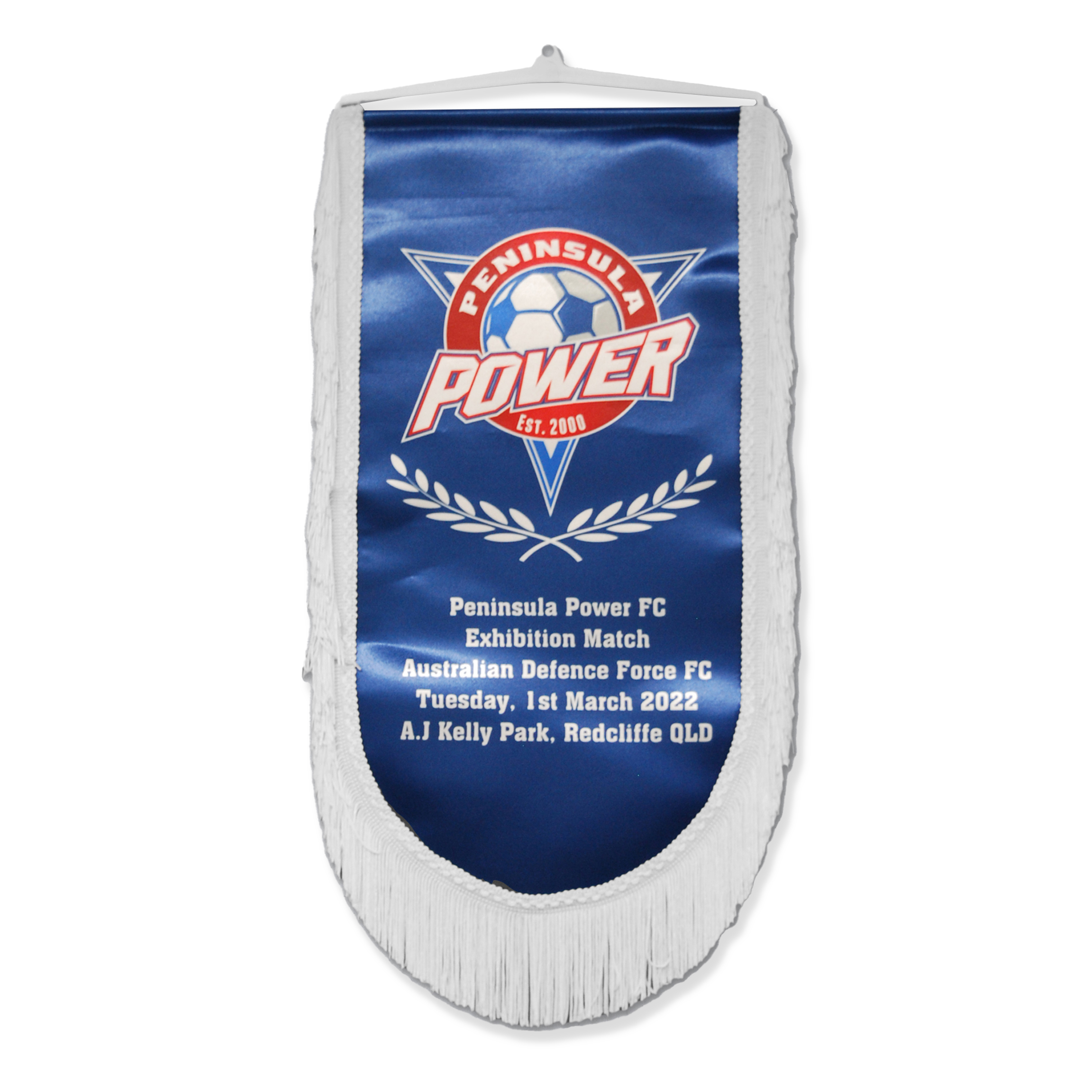These elegant satin pennants feature a classic spade shape with a decorative fringe and hanging rod, creating a professional presentation piece for clubs, teams, and associations. Each pennant is printed in full colour on quality satin fabric, delivering vibrant logos and text for lasting visual impact. Perfect for exchange pennants, special events, or clubroom displays, these banners offer a premium finish that reflects your organisation with pride.