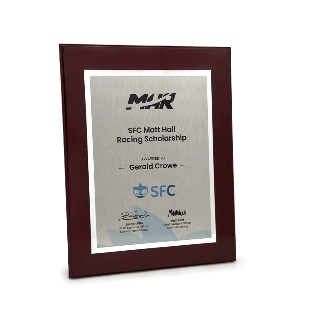 This gloss rosewood plaque features a full colour sublimation plate mounted on a mirror backing for added depth and visual impact. The rich rosewood finish balances beautifully with the reflective layer and vibrant print, creating a premium award suited to distinguished presentations, leadership recognition and corporate achievements.