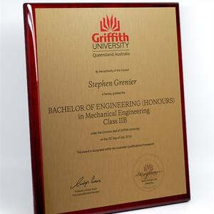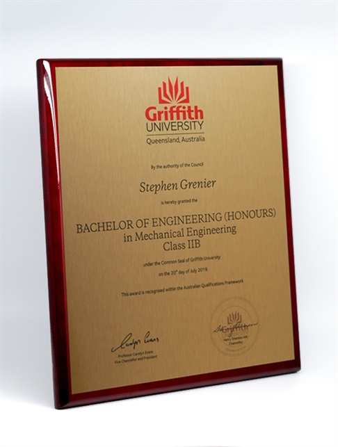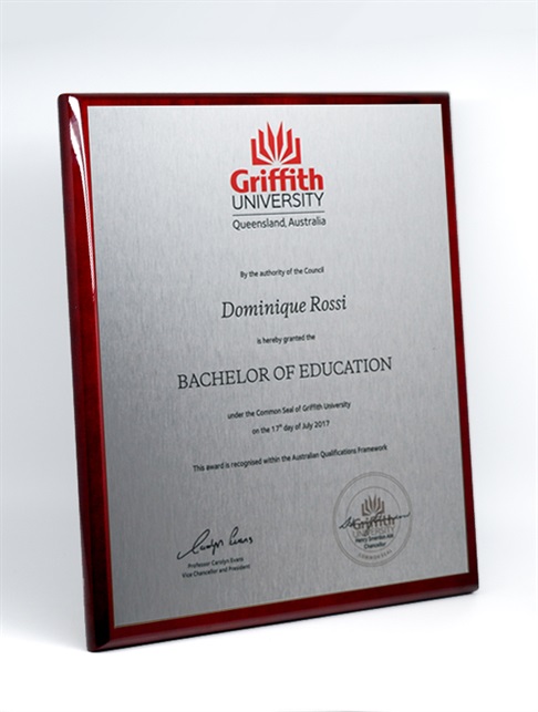 Our Graduation Plaques are designed to showcase your original testamur. See the FAQs below for more details on files, colour matching, and what to expect from the reproduction process.