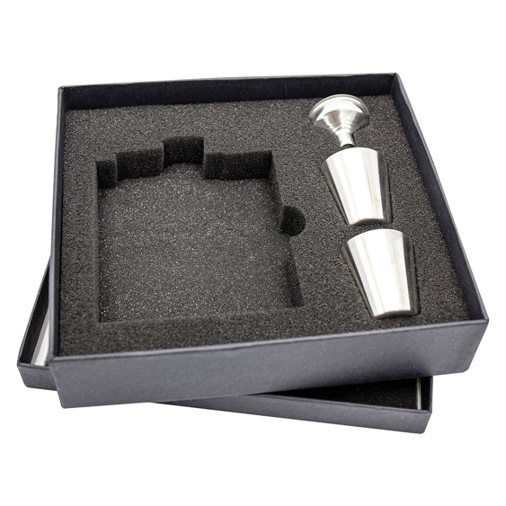 Flask Presentation case, which includes a pourer and two miniature cups. Just add a Hip Flask from our Hip Flask Range.