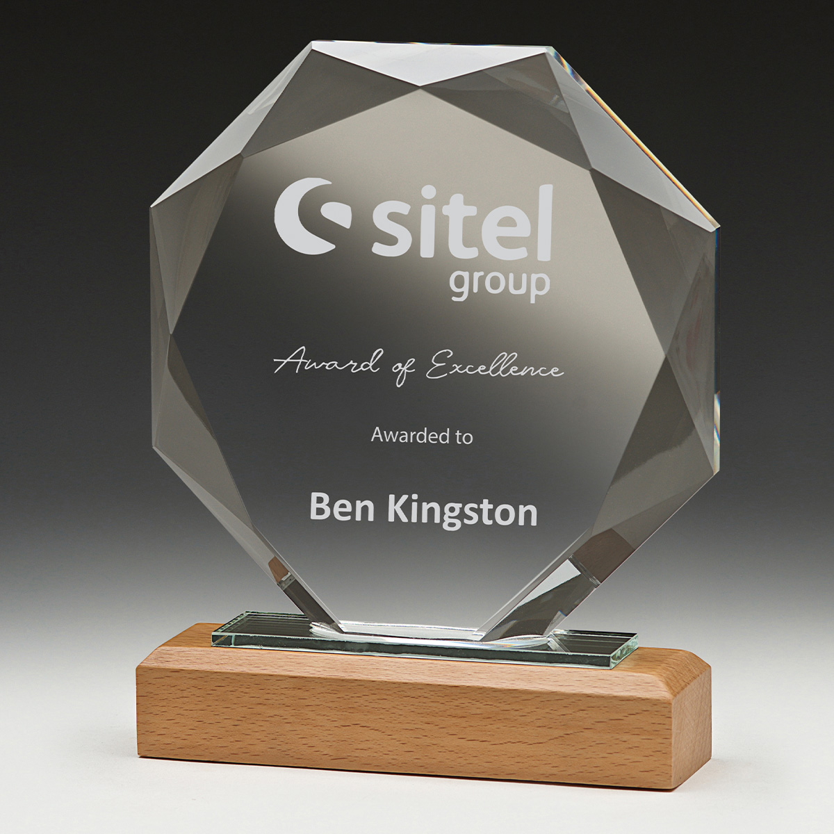 We use Superior Sandblast engraving or high-resolution full-colour printing to achieve striking results on our glass awards and trophies.