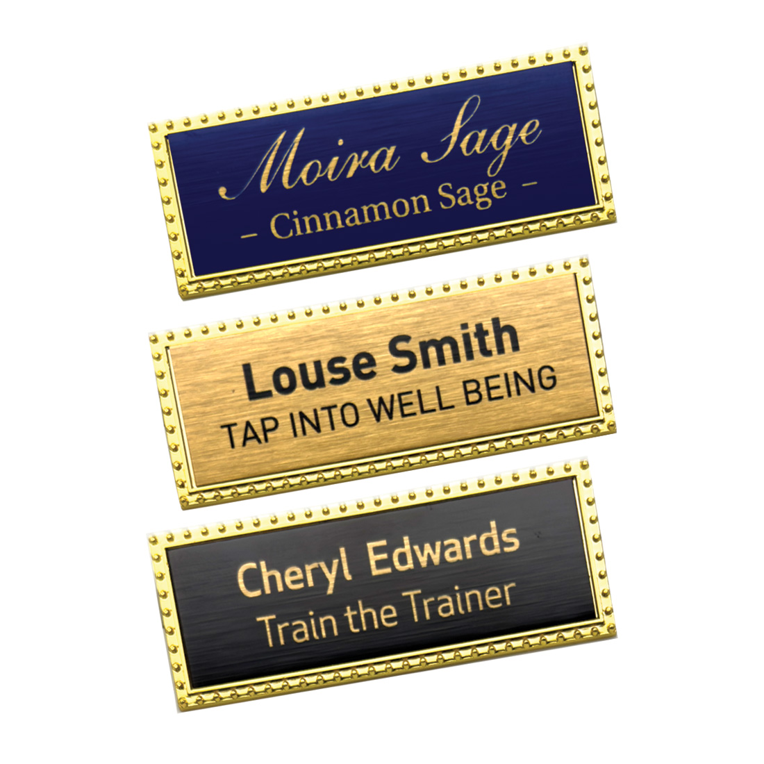 This adaptable office bearer/title bar is a versatile choice for schools, clubs, and organisations. It features a gold-plated metal frame with a secure brooch pin backing. The insert plate can be printed in any colour with your chosen wording, allowing full customisation for roles, names, or titles.