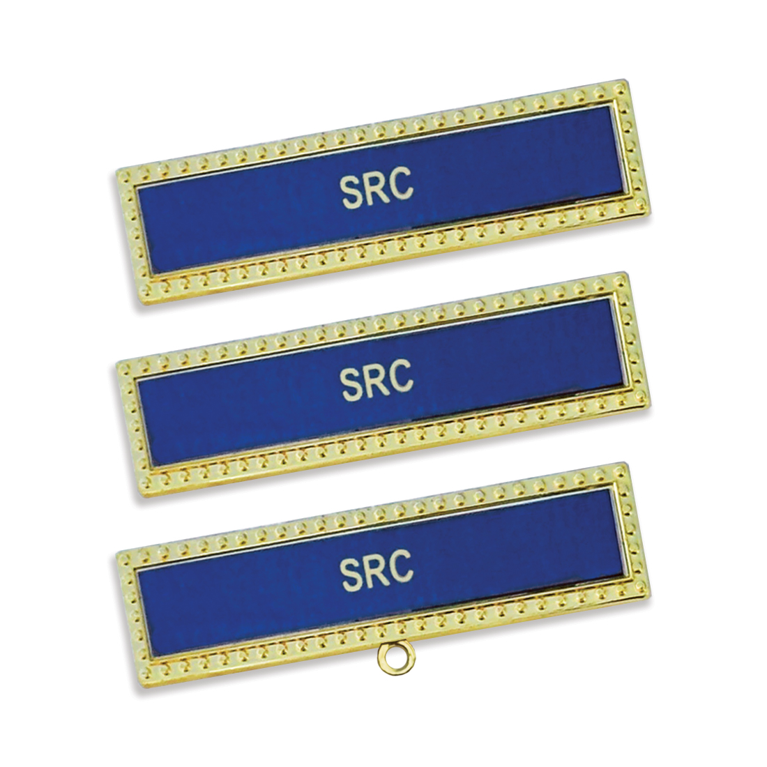 They are made from cast metal and then plated with metal. The bar inserts are typically made using a metal sublimation plate. Sometimes, we use plastic laser-ply materials for the bar insert. For the emblem inserts, we use a metal sublimation plate with a base colour of gold, silver or white, depending on the badge colour and your logo colour. For bulk orders, we may use a typical custom centre with a clear domed cover.
