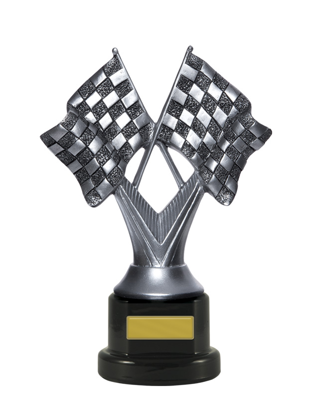 A refined choice for recognising motorsport achievement, this trophy features a pair of crossed chequered flags set atop a sturdy base in silver, black, and gold tones. Crafted with quality materials, it offers a dedicated plaque area for personalisation, making it ideal for racing and motorsport trophies alike.