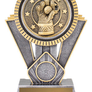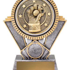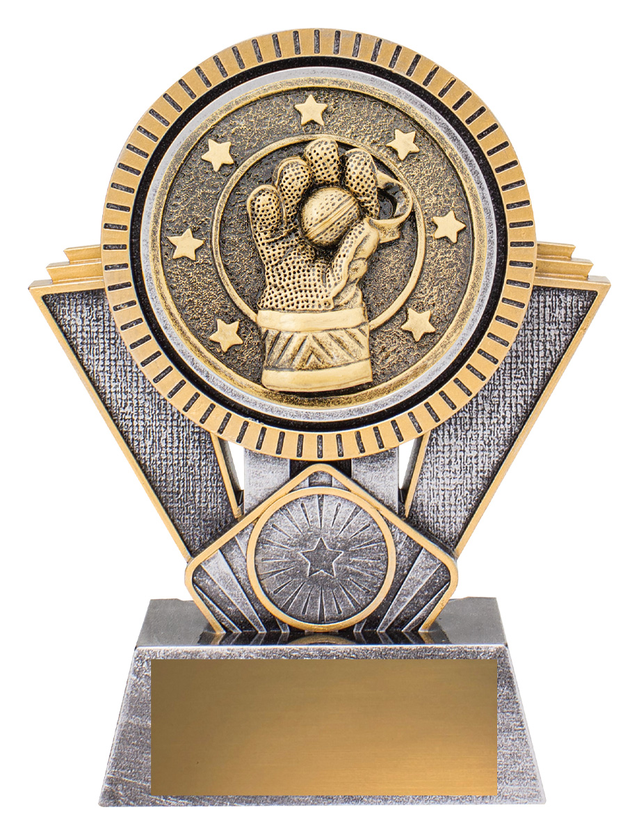 This cricket trophy is crafted to honour the skill and commitment of wicketkeepers. Featuring a gold and silver finish, it displays a cricket glove securing a ball atop a sturdy rectangular base, accented with star details that evoke the spirit of achievement. The resin finish delivers a durable, quality award designed for memorable recognition.