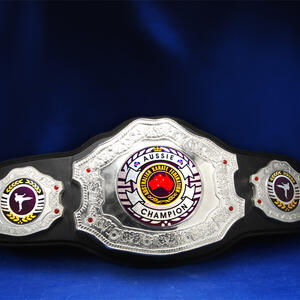 This is our standard Championship Title Belt, designed for prestige and personalisation. Also known as a Title Belt, it features three customisable disc sections — a large centre plate (130mm Diam) and two side plates (75mm Diam) — allowing full-colour printing of your logo, event name, or design.