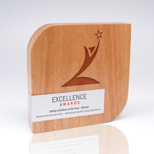Showcasing contemporary Australian craftsmanship, this trophy combines select grade blackbutt timber with a sleek metal wrap for striking contrast. The natural timber grain delivers warmth and individuality, while the refined metal accent enhances the award's professional presence. As part of the Sustainable Timber Awards collection, it sets a new standard in wooden awards, perfectly suited for distinguished recognition across any industry.