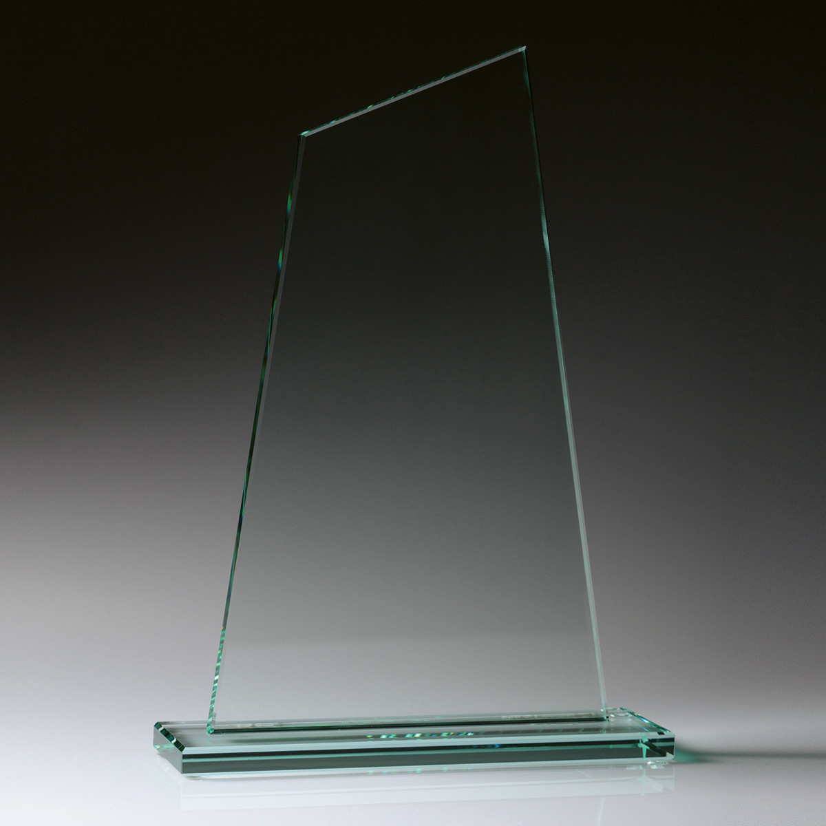 Glass trophies typically have a very slight green tinge, which can subtly affect the appearance of colour printing. In contrast, crystal trophies are completely clear.