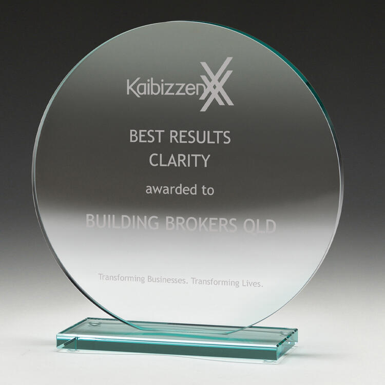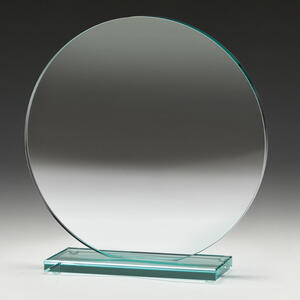 Glass trophies typically have a very slight green tinge, which can subtly affect the appearance of colour printing. In contrast, crystal trophies are completely clear.