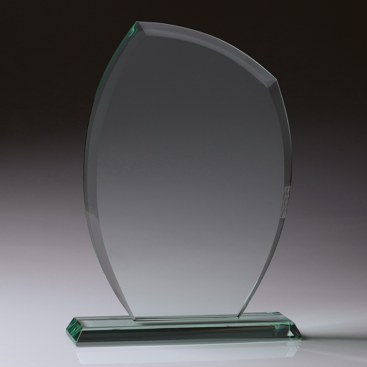 Glass trophies typically have a very slight green tinge, which can subtly affect the appearance of colour printing. In contrast, crystal trophies are completely clear.