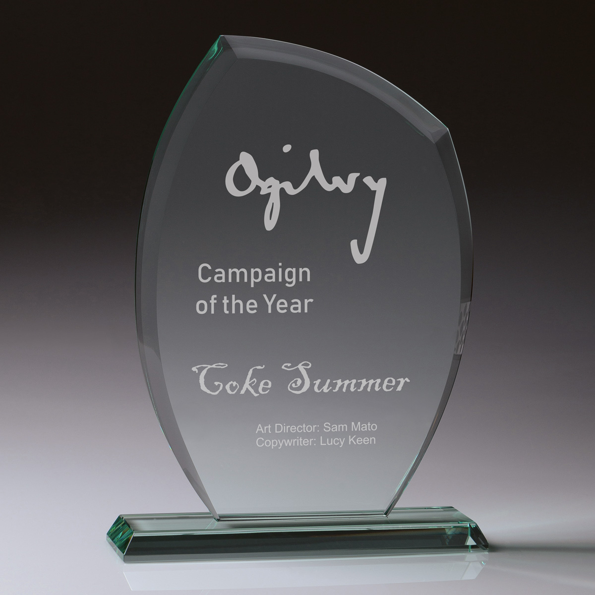We use Superior Sandblast engraving or high-resolution full-colour printing to achieve striking results on our glass awards and trophies.