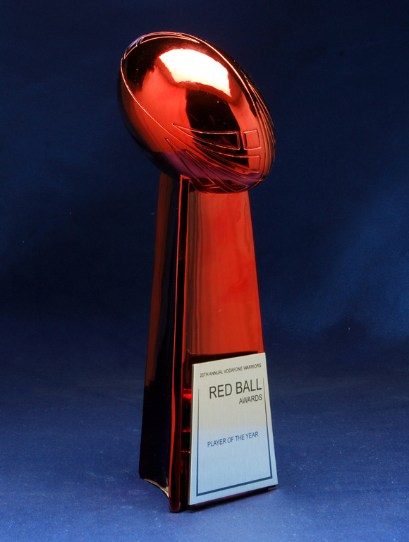 The New Zealand Warriors Red Ball Awards Trophy is a striking, custom designed piece that symbolises achievement at the highest level of rugby league. Featuring a sculptured rugby ball mounted on a sleek pedestal, this award is finished in a bold, high quality metallic red that reflects strength and prestige.