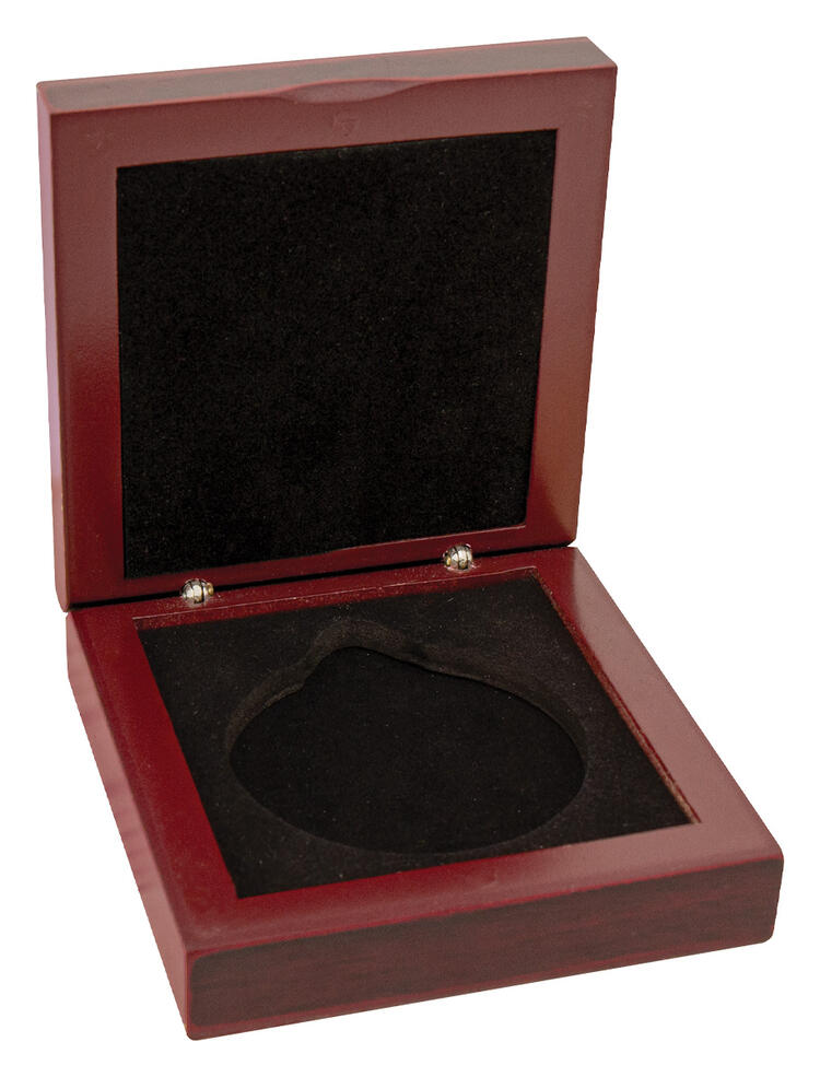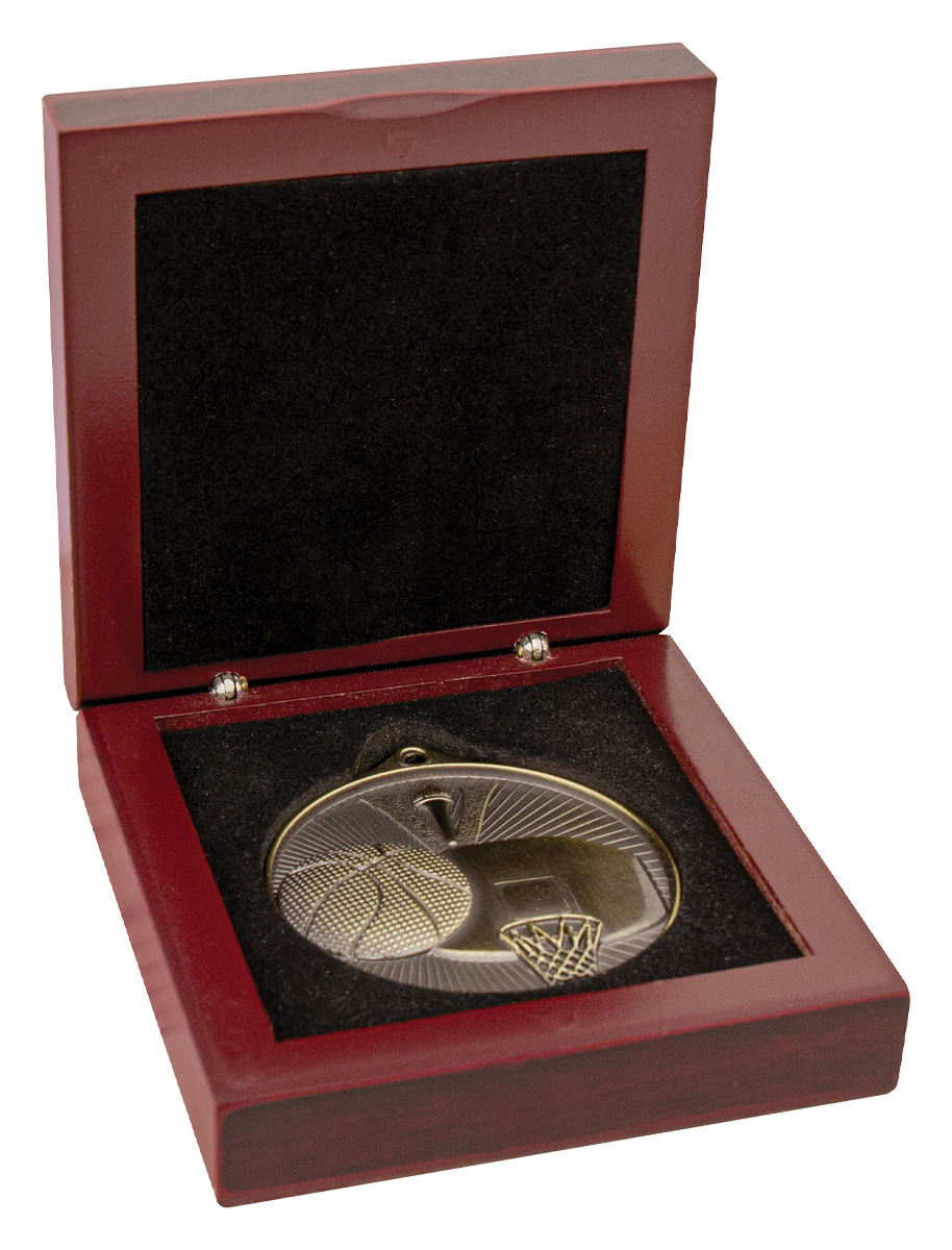 This premium timber medal presentation box offers a sophisticated way to honour boxing achievements. Crafted from durable wood in a rich brown and black finish, it features a square design with a velvet lined circular insert that securely displays your medal. This case provides an elegant, professional look, making it a trusted choice for memorable recognition. Fits 50mm Medal