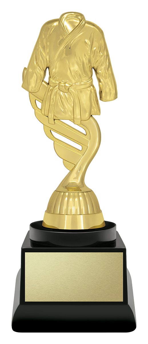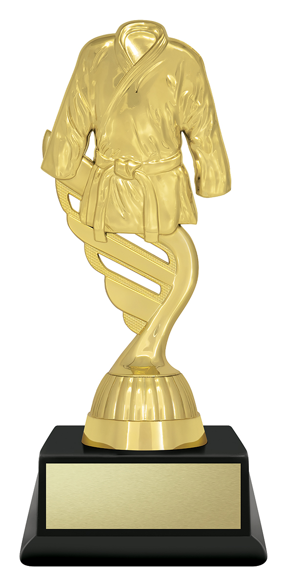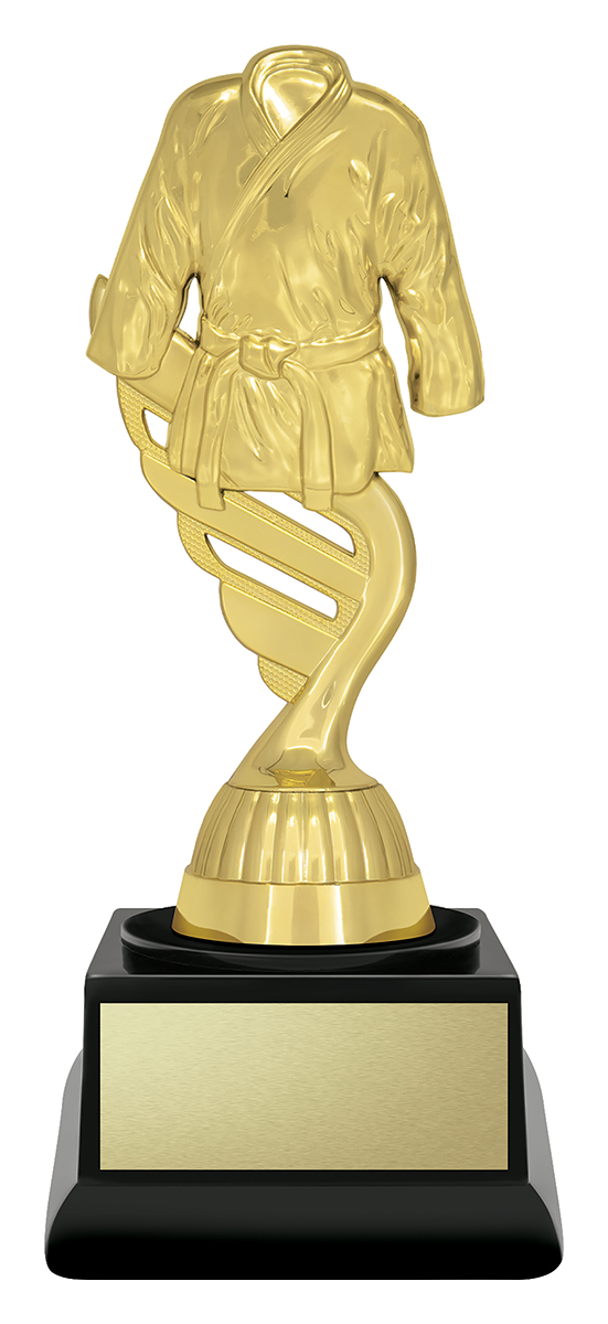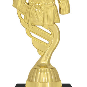 Celebrate dedication and achievement in martial arts with this striking martial arts trophy. Featuring a detailed gold martial arts uniform design, it stands out on a sleek curved base with black and gold finishes. Crafted from durable plastic, this award offers a refined way to recognise skill and commitment in martial arts events.